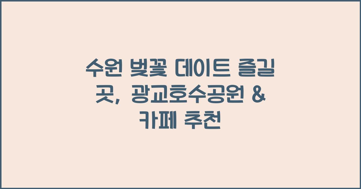 봄이 오면 수원 곳곳에서 피어나는 벚꽃은 잊지 못할 추억을 선사합니다. 특히, 수원 벚꽃 데이트는 연인에게 완벽한 하루를 만들어 줄 수 있는 특별한 경험입니다. 이 아름다운 시기에 사랑하는 사람과 함께 벚꽃 아래를 걷거나, 석양을 바라보며 노곤한 카페에서의 시간을 즐기는 것은 그 무엇보다 소중한 기억을 남깁니다. 광교호수공원은 이러한 수원 벚꽃 데이트의 명소로 특히 추천할 만합니다.